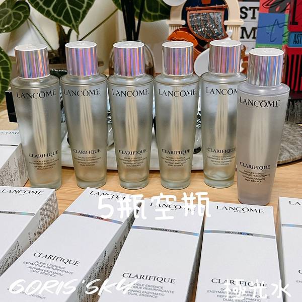 LANCOME極光水自2020年上市以來我也用了不知道幾罐去,剛好手邊還剩5瓶空瓶了有圖為證!左邊看得出來是空瓶吧!哈哈,不太好拍的很明顯,簡單來說的話,感受就是就真的滲透力很好,同時很保濕,而且有一種肌膚髒東西都被清的很乾淨,重點是肌膚的透亮度、飽滿感,比較明顯的感覺有整個亮白了一色階,甚至一些痘疤、斑點都感覺明顯淡化,臉變得乾淨許多!