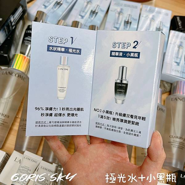 也因為蘭蔻的極光水+小黑瓶搭配使用下來的效果可以說有感的也很不錯,所以這次全台蘭蔻專櫃都能免費兌換的試用禮盒,就是要讓你一次可以兩個搭配使用看看,兌換禮盒也不是在那邊就是直接給你試用品而已,你看!還有做成這樣的別緻小禮盒!