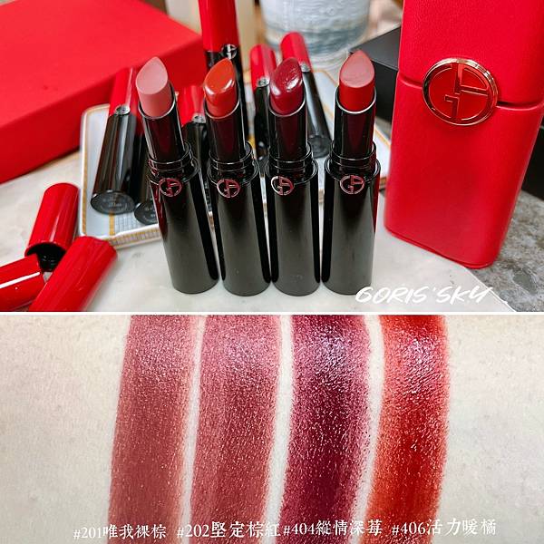 GIORGIO ARMANI奢華訂製琉光唇萃17色全試色/9款純色+8款珠燦流光琉光色調