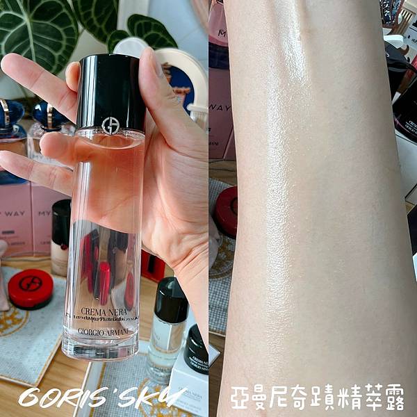 這瓶GIORGIO ARMANI的粉水-黑曜岩奇蹟精萃露,真的不只是化妝水而已,那個質地,濃潤度的精萃感,你去櫃上壓一下在手上絕對就能感受到,完全是給任何剛清潔完,甚至是乾燥的肌膚瞬間喝飽水、補水的精萃黑曜岩能量!整個滲透的肌膚裡,瞬間水潤了,同時透過拍的過程帶點按摩感的,就像居家SPA般的療癒香氛,你會期待每天保養時刻的到來,看到肌膚喝飽水的柔嫩光,特別是針對肌膚太乾不好上妝,或是需要急救的大量修護補水,透過濕敷的方式,更能像是精華水面膜般的快速柔潤嫩膚,你會受到後續底妝更吃妝、更持妝、也更透亮。