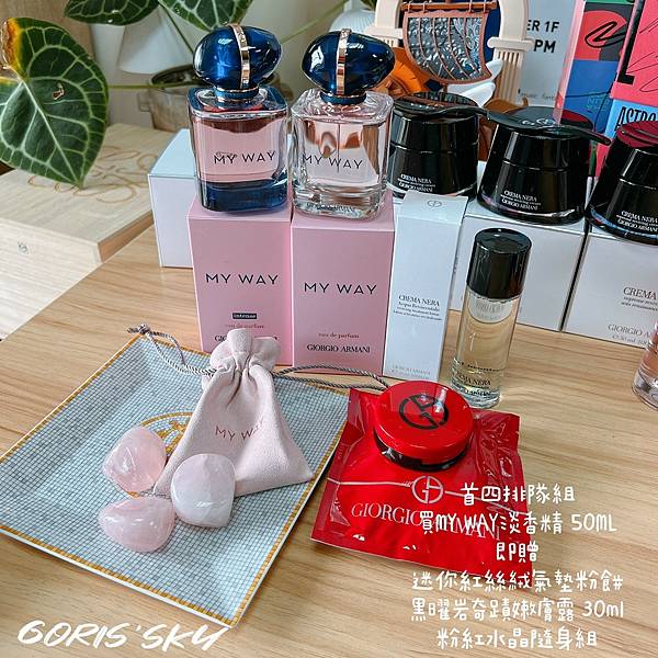 白花香氣結合麝香與香草的深邃底蘊,GIORGIO ARMANI現在最受歡迎的MY WAY淡香精,任一50ml同樣直接送你30ml嫩膚露還有迷你紅氣墊外,隨身擴香粉晶組讓你噴上香水,隨身攜帶時時刻刻幫你招桃花啦!!!
