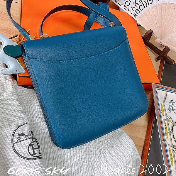 終於從櫃上買到!!!HERMES夢幻天菜2020經典藍x金釦mini CONSTANCE小康包