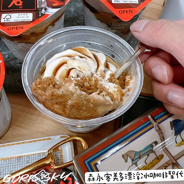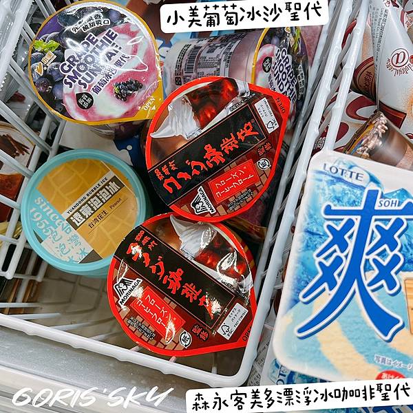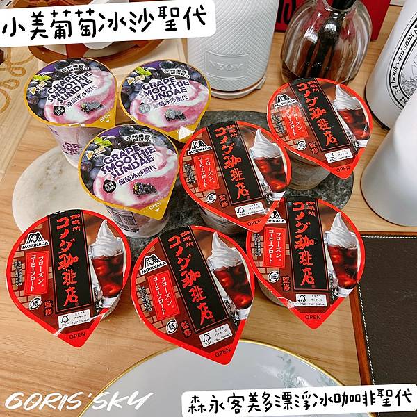 重點是意外蠻好吃的,葡萄冰沙基底,揉入一點冰淇淋然後裡面咬得到蒟蒻,蠻消暑的,但這應該不難買,難買的是森永客美多漂浮冰咖啡聖代!!!!這個喜歡大人味、咖啡飄浮聖代的一定要吃到!!!!