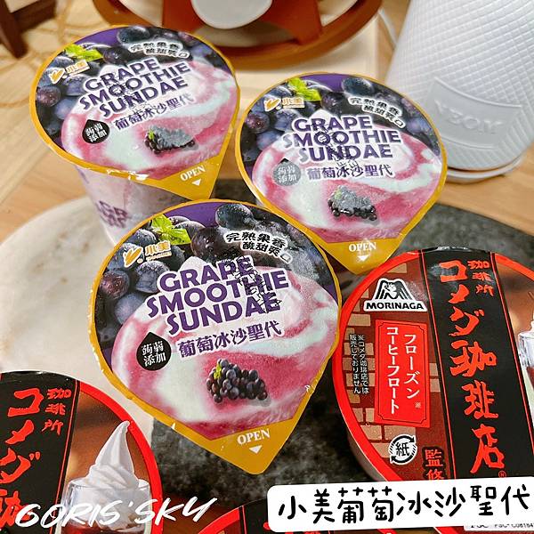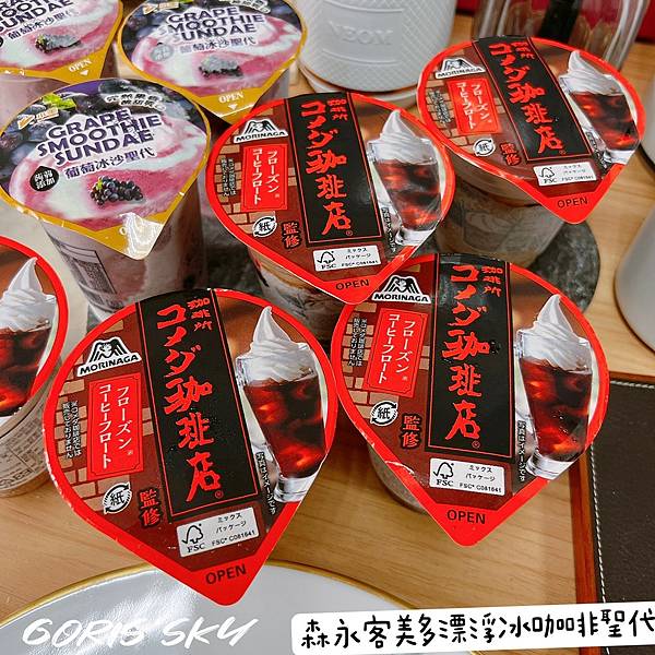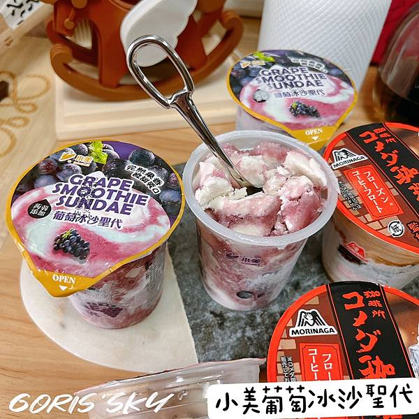 總之,我一開始只是為了森永客美多漂浮冰咖啡聖代,好不容易湊齊比較滿的畫面,但想說湊偶數,看到旁邊的小美葡萄冰沙聖代想說湊一下一起優惠這樣。