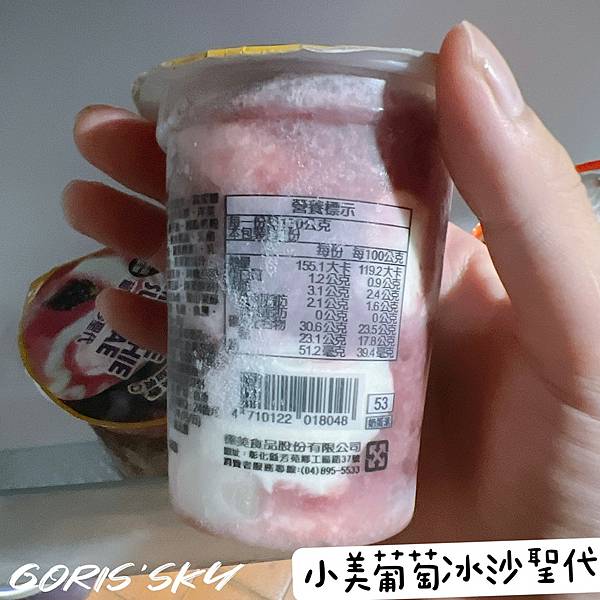 然後啊,現在7-11因為偶數有抽抽樂,然後4件冰品可以集一點,滿額可以免費換很多商品也能換哈根達斯之類,我為了湊偶數看到小美這葡萄冰沙聖代想說便宜很多順便買了