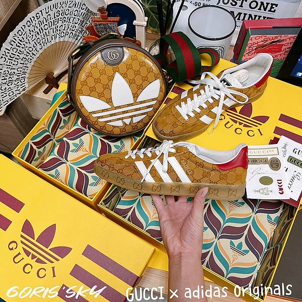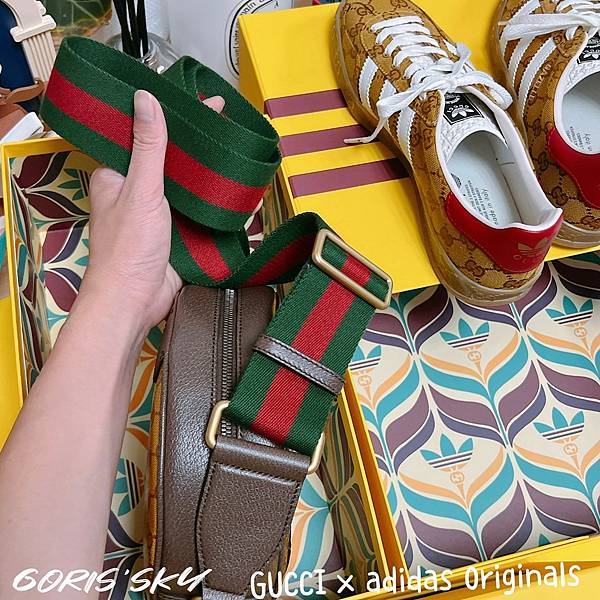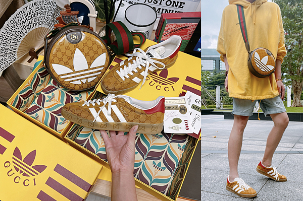 就GUCCI x adidas Originals聯名的紀念性來說,我是只有入手一雙鞋還有包包,基本上啦,我覺得你要有一個概念,這一次的GUCCI x adidas Originals聯名,賣的價錢是GUCCI的價錢,不是adidas的價錢,所以你在選擇上,還是要選能看出GUCCI,甚至是比較有精品感的產品,那經典的GUCCI LOGO緹花會是主要選擇。