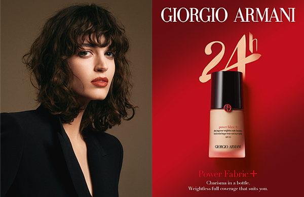 我們先直接來看這次年度重磅升級A+亞曼尼超持妝絲絨水慕斯粉底的主視覺!你一開始看可能會覺得莫名其妙阿不就一樣?錯錯錯,瓶身上明顯多了一個+註記外,主視覺更是直接從舊款強調的16小時,直接標記24小時,而且概念更是透過粉底去筆畫下來,飽和飽滿的粉底字跡,呈現出的也是想要表現更延展性更飽和明亮的質地感。