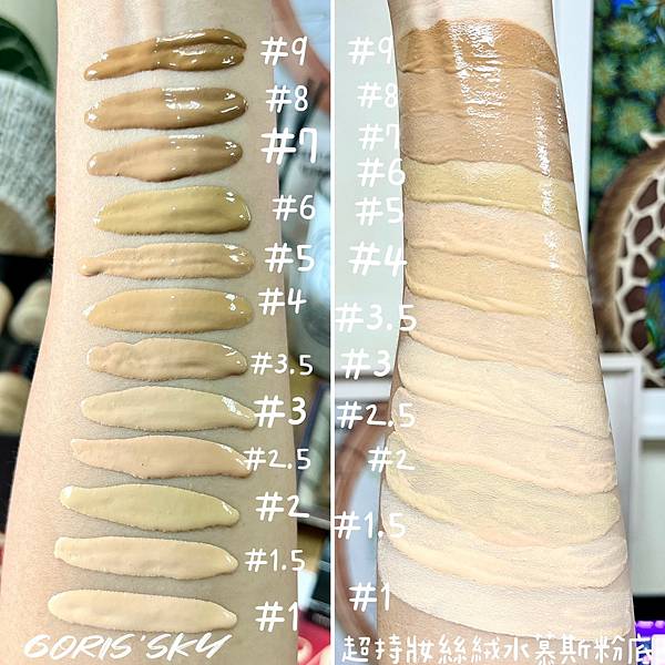 基本上,在這瓶超持妝絲絨水慕斯粉底一共12色中,除了有了有史以來的最白色1號外,基本上選色上請先大概判斷一下自己是白皙、自然、還是健康色階,這是決定於你的底妝明度!