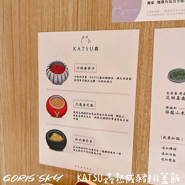 KATSU 鑫|熟成豬排蓋飯包括調味粉,從七味唐辛子、九鬼金芝麻、和式黃芥末醬料都很豐富!