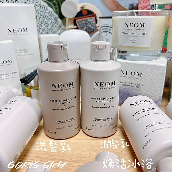 新品煥活冰浴洗髮露&潤髮乳我跟你說,真的是現在夏天大家洗頭的福音!!!維持一貫NEOM精油療癒,除了加了迷迭香、尤加利等6種精油外,最重要的就是添加了綠薄荷!!!完全可以淨爽你的頭皮、冰涼你的頭皮,但完全不用擔心洗髮露就是不含SLS、不添加矽靈,冰涼頭皮同時也能讓頭皮舒活,你會愛上洗頭的有夠舒爽~就算我沒頭髮,拿來單純清潔頭皮都覺得好療癒好舒服!!!潤髮乳我就給我媽用了哈哈哈哈