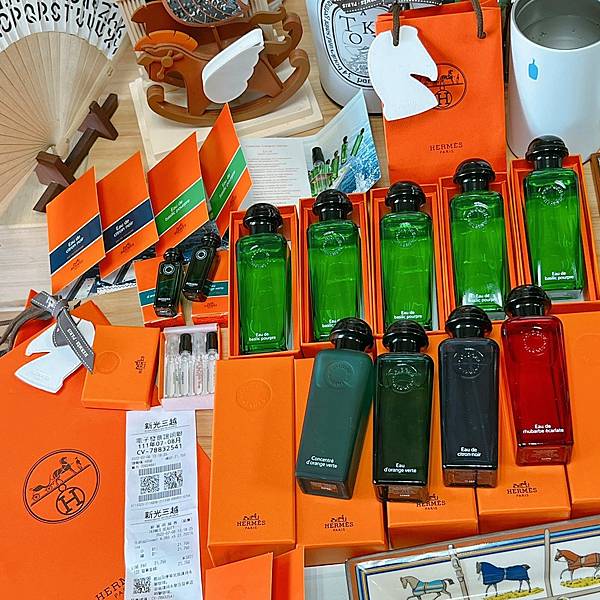 而講到這系列,最受歡迎的TOP3我自己也很喜歡,也可以說是系列9瓶中我自己最常噴的,包括賣最好的就是紅色瓶身的緋紅火參香水,是一種豐潤感性,很有枝葉甘醇清香感,賣得最好的TOP2也是我之前在機場買的黑檸檬香水!!!煙燻的溫潤香調,清爽中多了一些沈穩,更不失帥氣率性的冷靜!當然~賣最好的TOP3就是我自己人生中第一瓶愛馬仕香水的橘綠之泉,大概我大學買的(當時還是蜜納集團代理有人知道嗎哈哈哈)橙皮綠葉香橙的清爽清甜,還有些綠薄荷的自然點綴堪稱經典