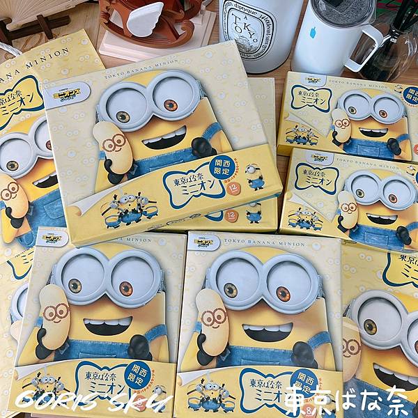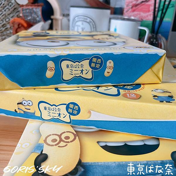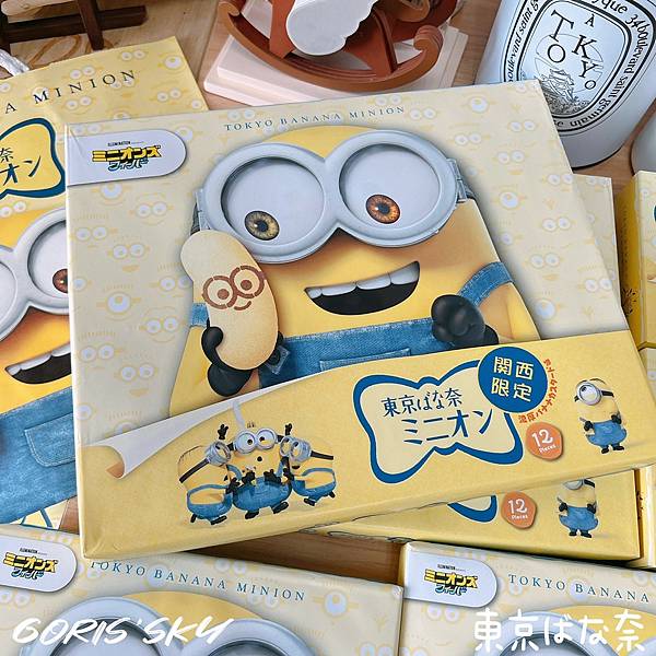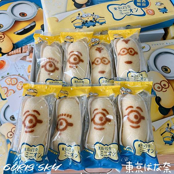 而東京BANANA聯名小小兵包裝上無論是4入、8入、12入都是同樣的圖案,然後目前是關西限定。