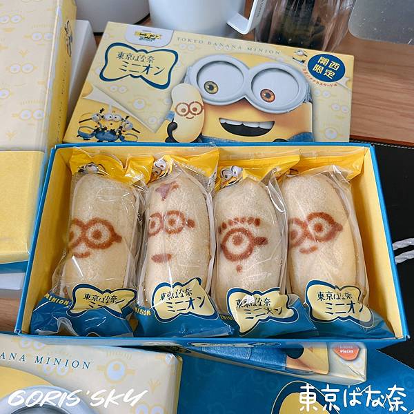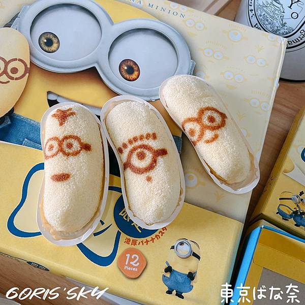 but..就是這個but!!!!連裡面經典的東京BANANA香蕉蛋糕也都印上了小小兵的臉和表情,而且本來東京BANANA就是那種淡黃色的蛋糕體設計,配上小小兵的表情真有夠適合、有夠呆萌的有夠可愛!!!!