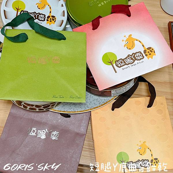 短腿ㄚ鹿曲奇餅乾我覺得他們蠻用心的是在盒子開膜有很多圖案設計外,包括紙袋都還有做多款的設計,這明明很多品牌大多就是同一款提袋、同一款鐵盒,但短腿ㄚ鹿曲奇餅乾倒是做蠻多款式的設計。