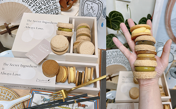 如果你還是不愛蛋白餅並這種口感的達克瓦茲,奶油餅這個也ok,內餡一樣講究的我的5入綜合口味包括有日本柚子檸檬夾心、一保堂焙茶、瑪黑皇家婚禮焦糖夾心、咖啡焦糖榛果、楊枝甘露等口味。