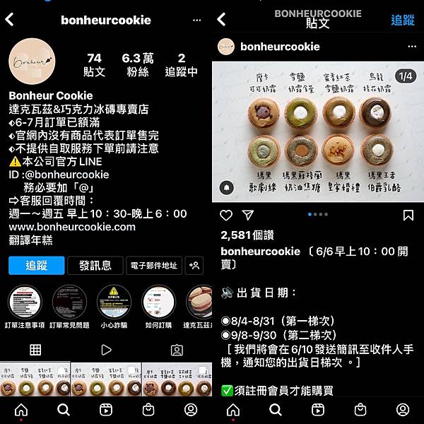 Bonheur Cookie雖然有官網,但常常上面都是空的,都是賣完了~哈哈哈哈,所以要吃的話基本上都是follow他們ig為主,會有開單等相關宣布。