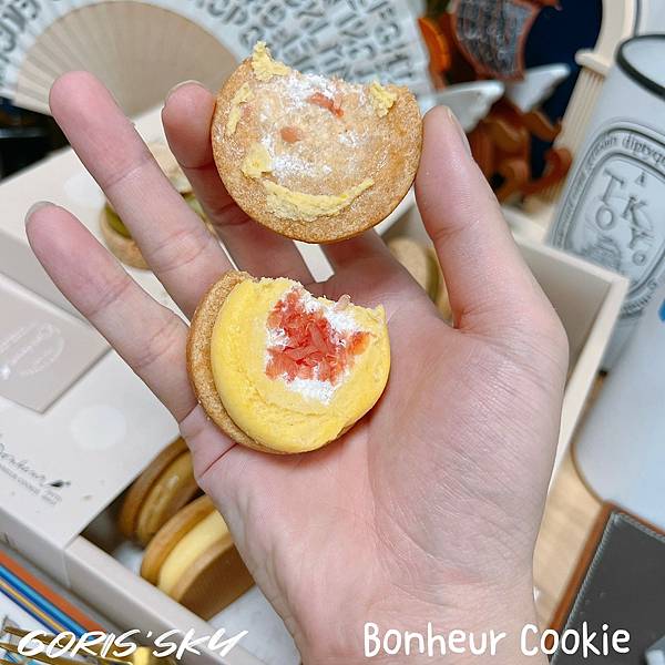 結果收到我吃了瞬間懂為什麼很多人推Bonheur Cookie了,因為外層的蛋白餅可能大家都會做,但Bonheur Cookie的內餡選材你吃得出質感、用心以及層次。