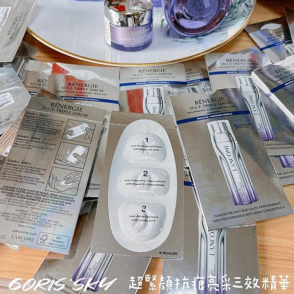 這瓶蘭蔻「超緊顏抗痕亮采三效精華」最讓我期待跟興奮的地方就是因為業界雙管、雙效精華其實不少了,雖然當時剛推出也是引起美妝界騷然跟轟動,但2022年的這一次,蘭蔻作為一個美容保養科技的趨勢領導品牌,首度在新品「超緊顏抗痕亮采三效精華」中,搶先全球推出三管x三效精華,其包裝設計像是一朵小花般,主要就是要置入3管精華的包裝設計。
