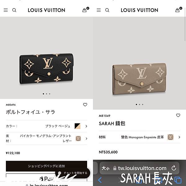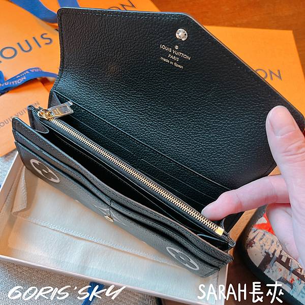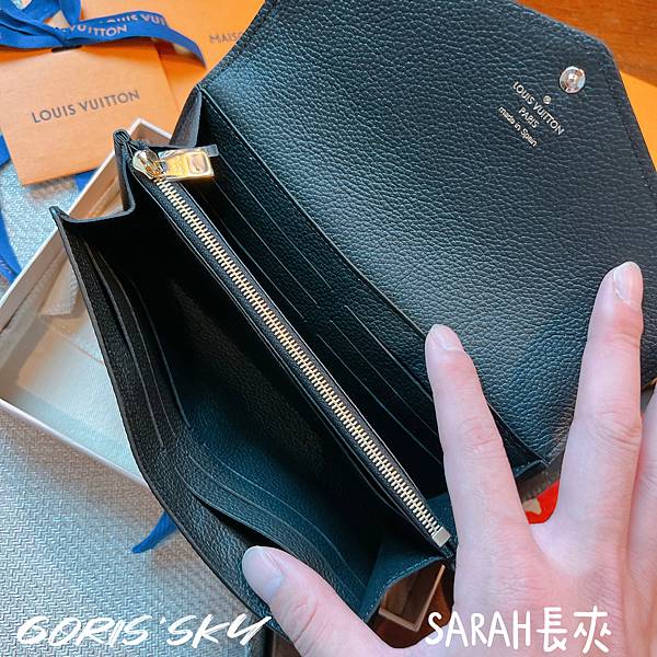 因為我朋友要我幫她挑,LV的SARAH長夾蠻經典的,很久很久前我也有買過,我覺得就是很實用、方便,然後好看,兩個配色雖然我比較喜歡奶茶色的配色,但她自己考慮到實用、耐髒,還是選了黑色,但我覺得ok在於MONOGRAM的排列蠻大氣典雅的不會俗氣,再者,你仔細看,雖然是黑色,但上面的印花是帶點柔粉色的,我覺得這樣的配色,讓黑色沒有那麼沈重,然後還多了一點溫柔感,最後她也喜歡的就幫她買了!