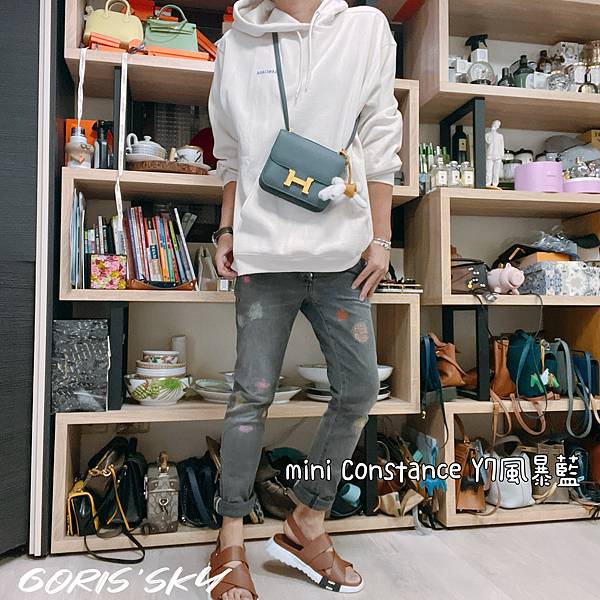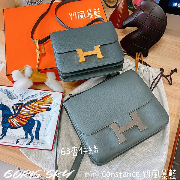 加上這顆HERMES mini Constance風暴藍配的是金釦,跟我本來的杏仁綠銀扣還是有點落差,如果是銀扣就真的有點太像我就不會想拿了。