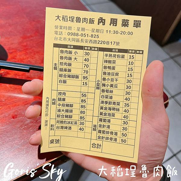 我那天停車在晶華飯店,就這樣走路走去哈哈哈我真的是有夠會走路!!!!一開始還有點找不到,原來是在巷弄裡,我大概中午12點半左右到,真的是超多人!!!內用外帶都好多人生意相當好!還好被我找到位置後,看著菜單實在覺得挺不可思議得也覺得很實在、蠻便宜的!