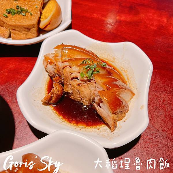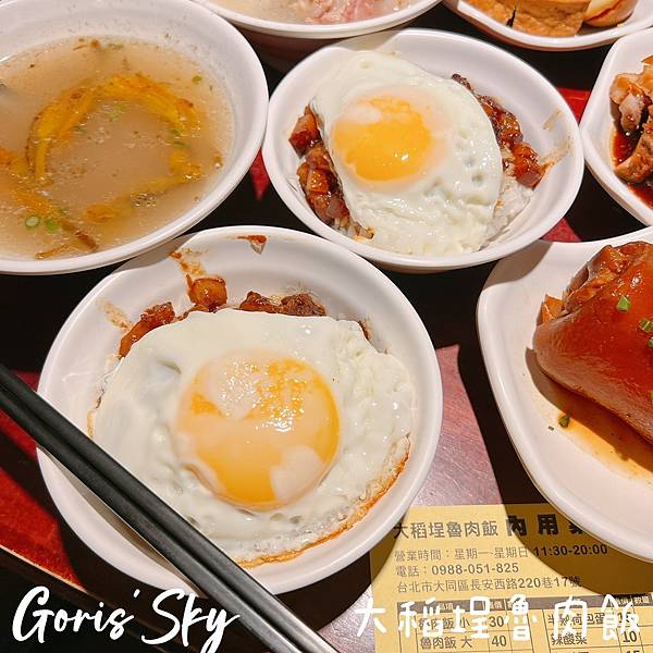 最療癒的自然是戳破但皇后緩緩流下的蛋液,和滷肉飯拌在一起,這樣配在一起可以說很療癒很好吃,大稻埕滷肉飯的滷肉肥瘦都有,所以吃起來就是比較多口感,配著半熟蛋,可以說就是很完美的搭配,很香也很好吃,也不貴。