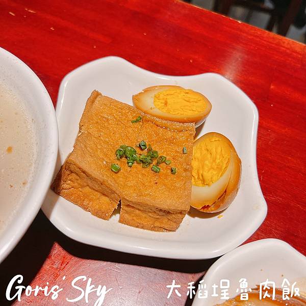 絕對必點,來吃就是為了半熟蛋配魯肉飯!戳破蛋液緩緩流下拌入滷肉飯中,太可以了,太喜歡!湯品包括蘿蔔湯、金針湯都熬的鮮甜,我看到很多人很推他們的腿庫跟豬腳,我覺得也好吃,滷得很透、很香,不會有咬不動的問題,幾單的油豆腐、滷鴨蛋純粹好吃!