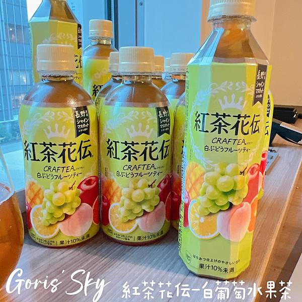 說真的我一開始也很怕這個跟之前紅茶花傳的水蜜桃紅茶、柳橙紅茶、蘋果紅茶之類比較單一成分的茶類,這個會不會比起來有點太複雜?但完全不會,主調還是白葡萄,白葡萄的香氣都很明顯,然後其他的水果就像安分守己的配角,烘托出白葡萄的自然香氣,我個人覺得是很好喝啦,不然不會買那麼多冰飯店冰箱!哈哈