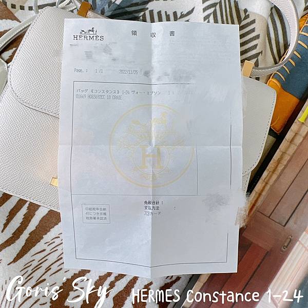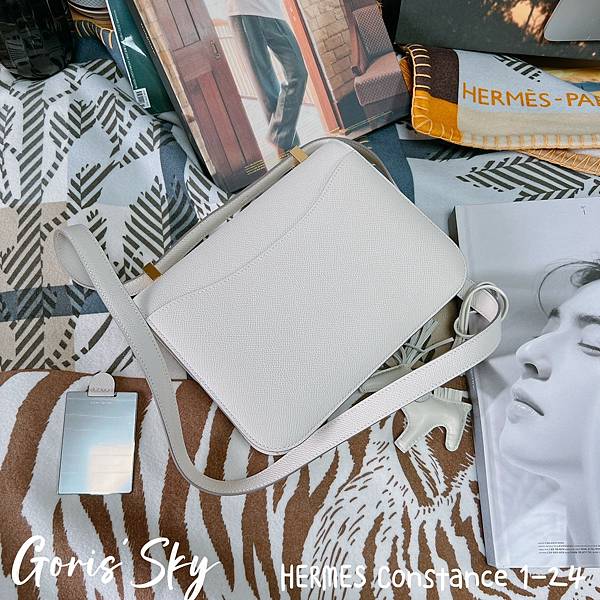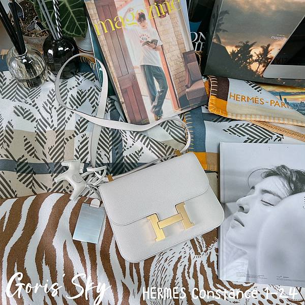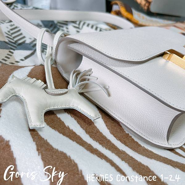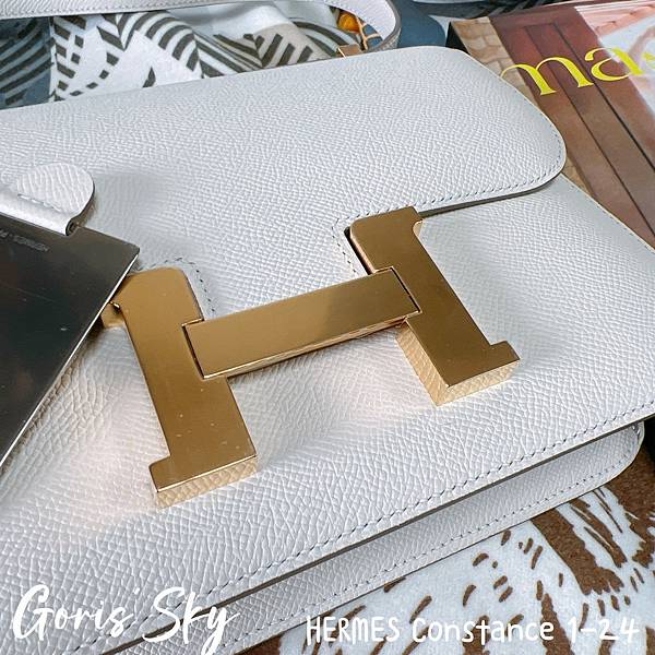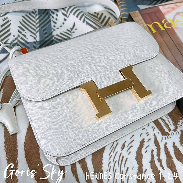 然後就是這次再一次從日本帶回的HERMES Constance 1-24,之前8月大象灰金釦HERMES Constance 1-24同樣也是從他手上拿到,然後這一次就再度拿到HERMES Constance 1-24,我是真的沒差,我很喜歡這款包,特別是改款後的HERMES Constance 1-24,真的輕便、時髦好多,而且正因爲我已經有了幾個康康後,剛好沒有這樣的白色,又是10 Craie奶昔白,配上金釦,真的也是二話不說就拿了。