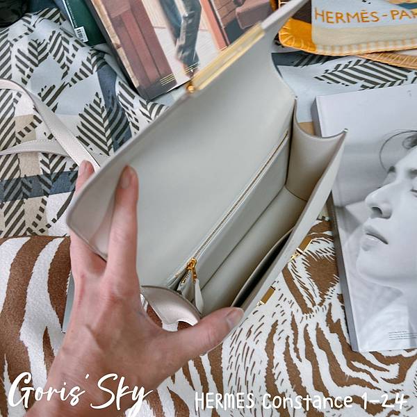 HERMES Constance 1-24內裏柔軟的皮革,一個拉鏈層,兩個小夾層,一個主要是放鏡子,然後就是這樣的大空間,說真的可以說很實用了。
