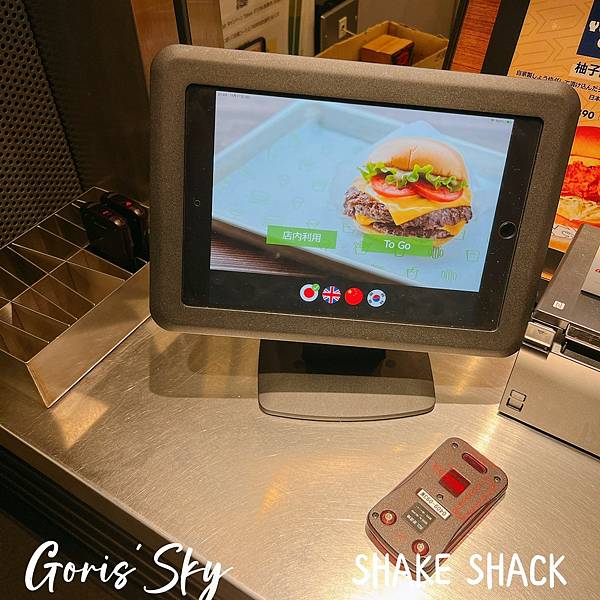 每次來日本看似簡單的星巴克、麥當勞、肯德基、藍瓶咖啡這種點餐一堆片假名真的是有夠難!!!雖然大概還是能指指點點,但有時候難免還是會點錯,我幾呼來日本絕對都會吃一餐,而且也很愛的SHAKE SHACK這次吃竟然店員沒有要跟我講話的意思,直接示意我櫃檯有平板,自助點餐就好!!!