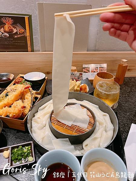 看看他們銀座 | 五代目 花山うどん烏龍麵,寬的讓人好興奮啊!!!我最喜歡很有口感的東西了