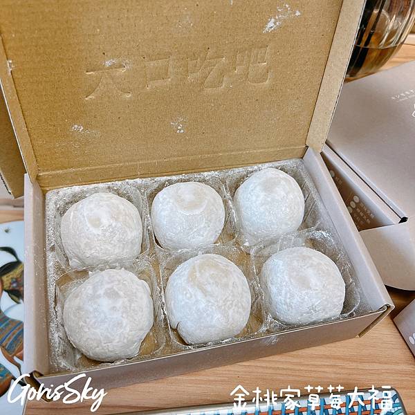 金桃家草莓大福一盒6個有隔板這樣裝,就還蠻保護的。