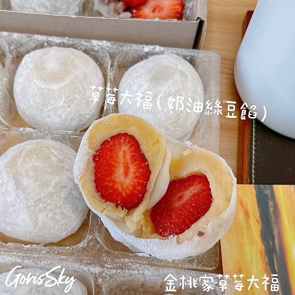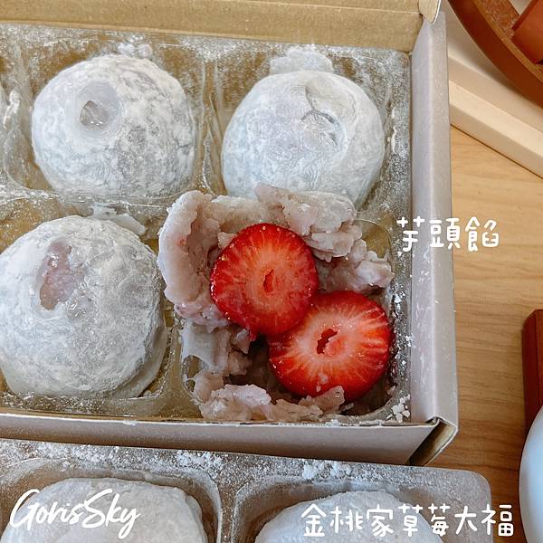 我覺得金桃家就是包裝很別緻,送禮收禮都開心,質感蠻好的,皮也蠻薄的,麻糬QQ的,主要就是好多好多口味可以選擇,不會只侷限草莓紅豆大福這種大家都在做的。