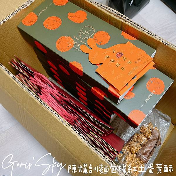 這是其中一單的5盒,然後意外多收到陳耀訓多送的一盒蛋黃酥,以及一包陳耀訓的新品土生土長黑糖麵茶米果。