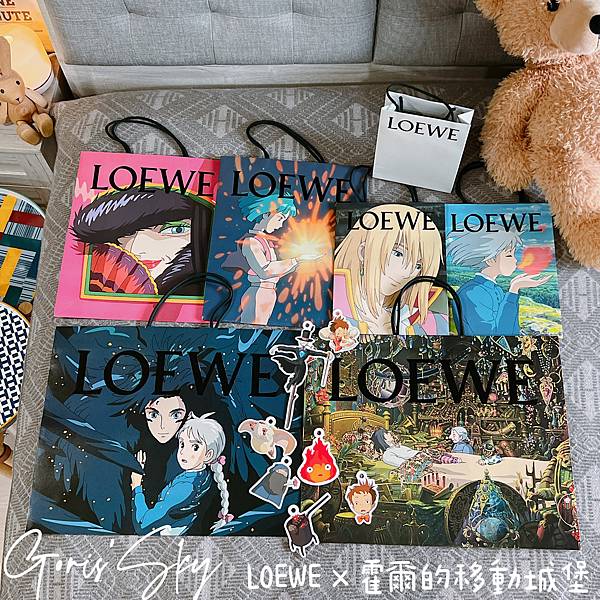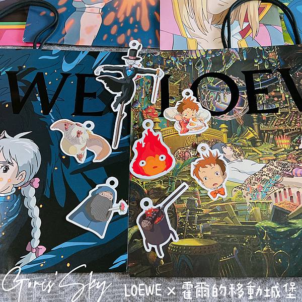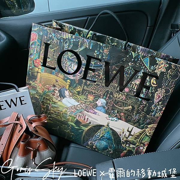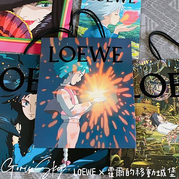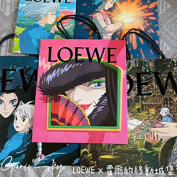 就是最想要紙袋啊是不是很帥很好看!哈哈應該是全台唯一啦 !!!我看從2/1上市到現在,沒有一家媒體或是其他人在台能夠完整開箱所有這一次LOEWE跟吉卜力最後一次聯名合作的「霍爾的移動城堡」的紙袋跟紙袋掛飾!!!! 我都懷疑有人買嗎?哈哈 !!!我跟你說,真的是好險我去問Sales從他一開始請我列清單給他,到後來前幾天他跟我說請我在2/1搶先在官網買就好,我才深深覺得在官網買有多方便 !!!因為他就這次的貨都主要被一間門市控制了,他真的幫不上忙,我覺得也沒關係,我只想買我想買的,然後只要你有於官網預約,2/1就會收到指定連結,透過該連結就可以到隱藏賣場,有夠好買的超好買的七上八下.......哈哈哈