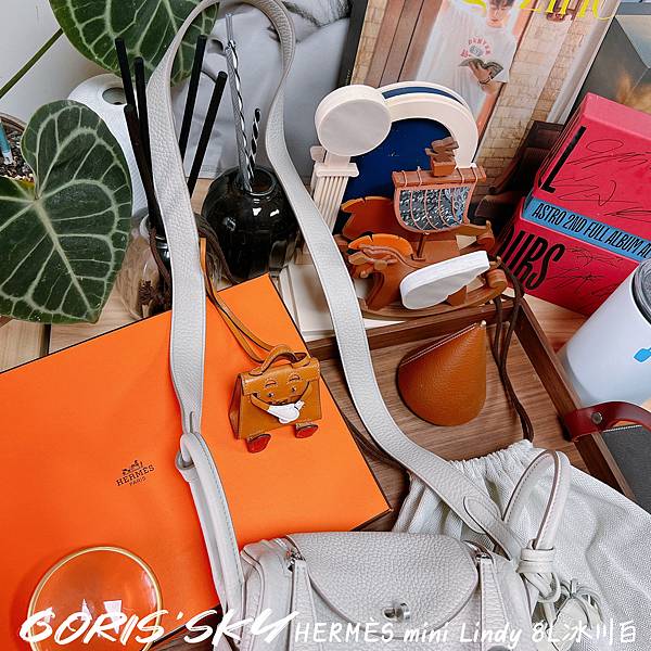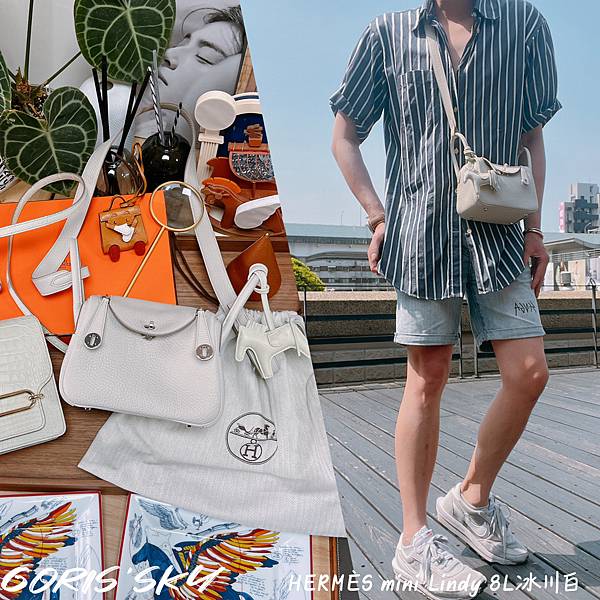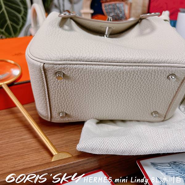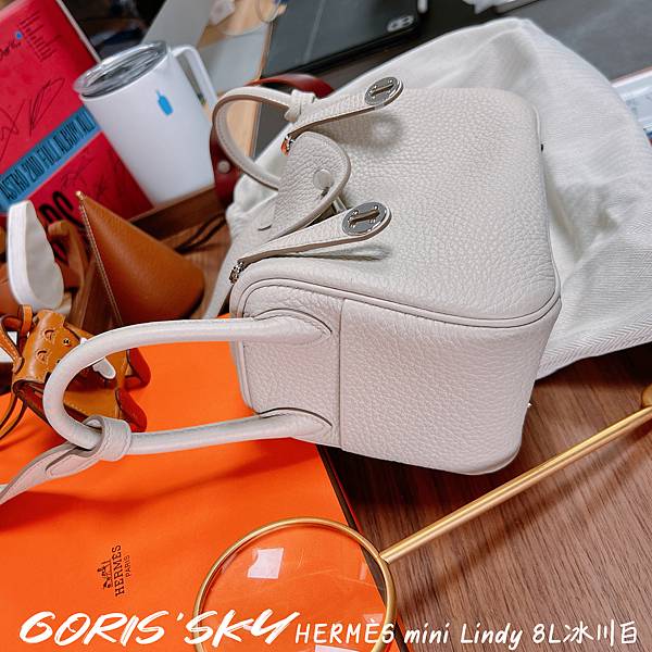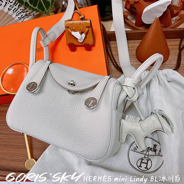 但我自己有了幾個HERMES包包後,真的是會很想要淺色、白色系的,陸續收了像是奶昔白的康康、冰川白的mini Roulis,也有Nata的mini Evelyn、然後也有8U珍珠灰的18cm Picotin等等,這次再碰上一個8L mini Lindy我真的是有夠喜歡的!