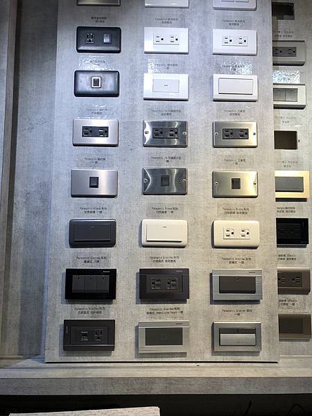 這個Glatima青炭灰開關面板我之前有整理設計師過去展間時拍的樣式選擇,就有很多種質感樣式,價格都不同。