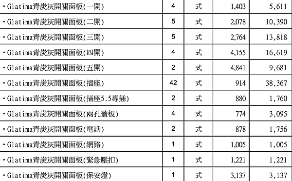 我家裡一共用73個Glatima青炭灰開關面板,明細價格如下: