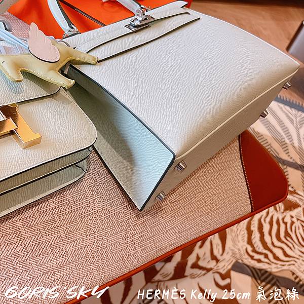 雖然0S VERT FIZZ氣泡綠在Kelly上搭配的是銀扣,其實我覺得搭配任何的扣,工匠也都是有想過的,0S VERT FIZZ氣泡綠淺淺清新,看似白、帶點旅綠,輕盈涼快的感覺,說真的,配上銀扣真的是也協調、不突兀,乾乾淨淨清清爽爽,更能帶出0S VERT FIZZ氣泡綠乾淨輕盈的清爽感。