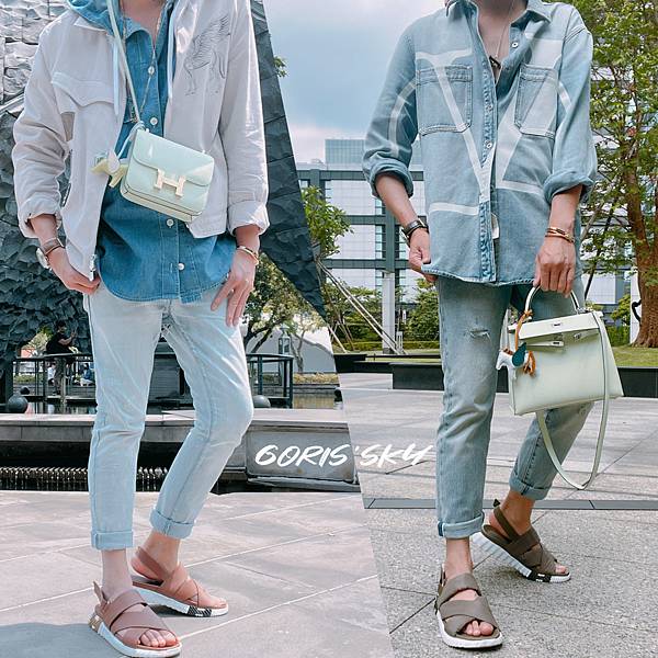 上身感覺這樣,我覺得很酷的是我在室內黃光下拍出來是有點米黃感,但在戶外拍起來又不同感覺,這也是愛馬仕調色上蠻迷人部分,就會有不同的各種反射角度、跟光澤感。