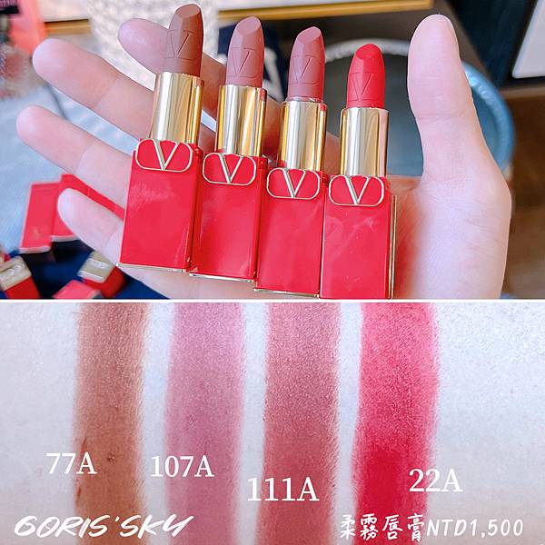 2種明星質地,26種高級色調,明星色選包含107A高級裸、77A囂張裸、111A潮酷棕紅、22A經典Valentino紅,只需一抹,即能在唇瓣上揮灑出精準又飽和的完美色彩。