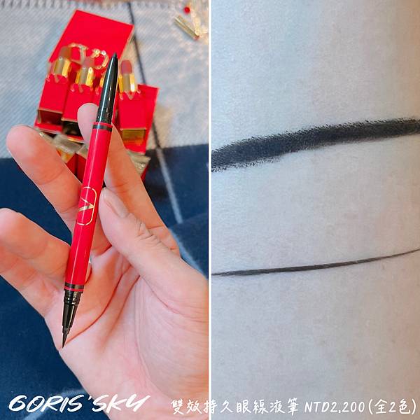 具備雙頭設計,一頭為激細眼線液可以勾勒精準線條;另一頭為眼線膠筆,可以描繪滑順色彩,搭配使用能創造出時髦眼妝!