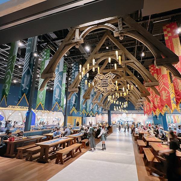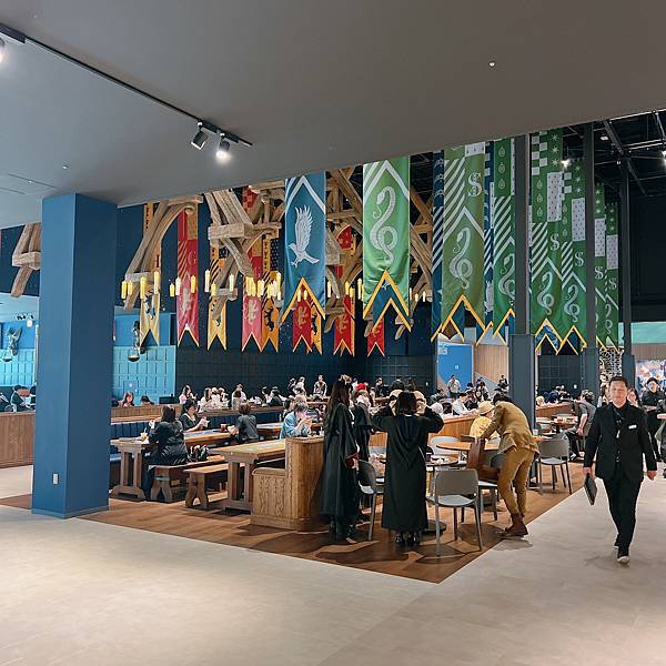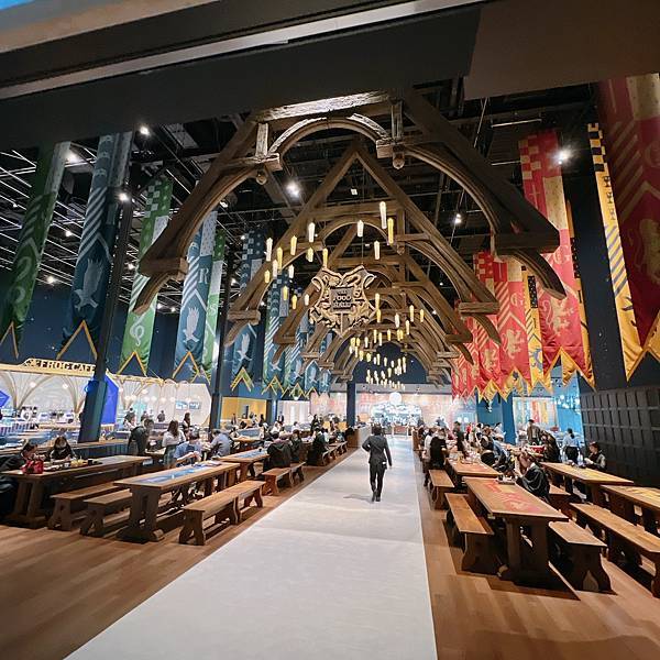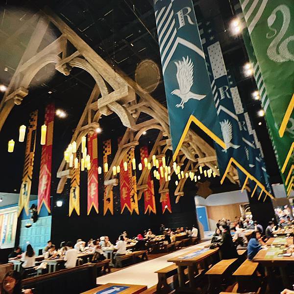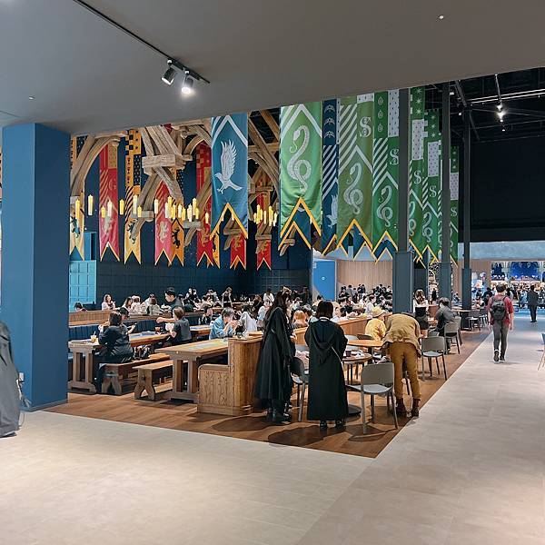 然後會進入學園餐廳造景,這裡就像是哈利波特第一次入學,在這裡分類學院的場景