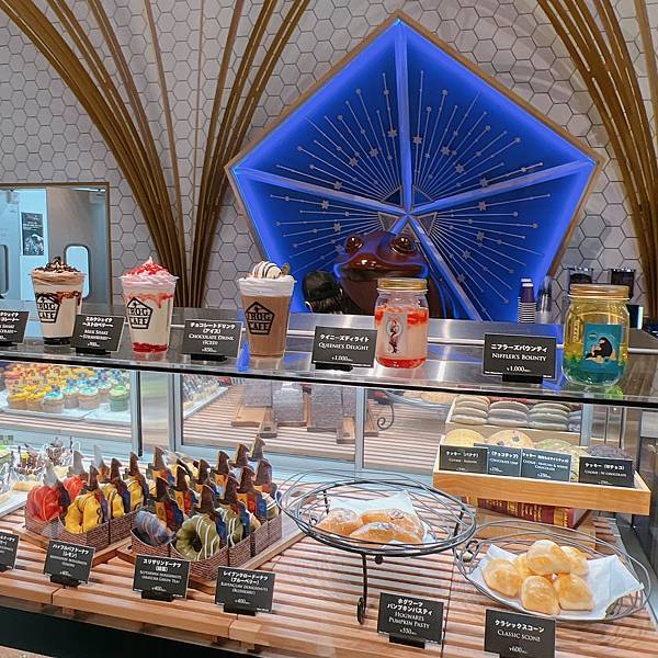 然後就是到了園區內的餐廳,餐點跟外面略有不同,大家主丟會點嘿米的蛋糕,然後奶油啤酒喝完杯子可以洗一洗袋回家當紀念,也蠻值得喝一下雖然很甜!