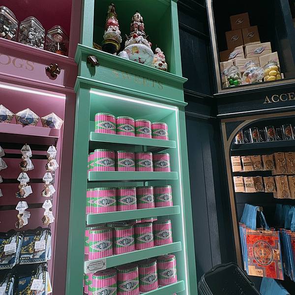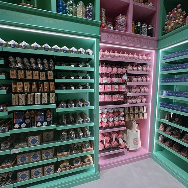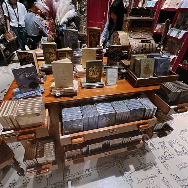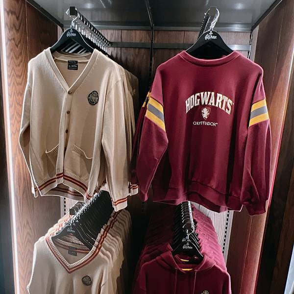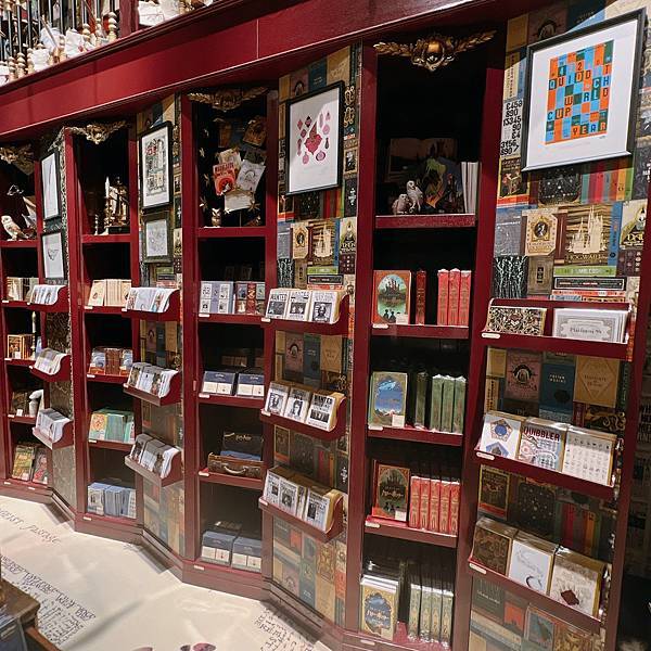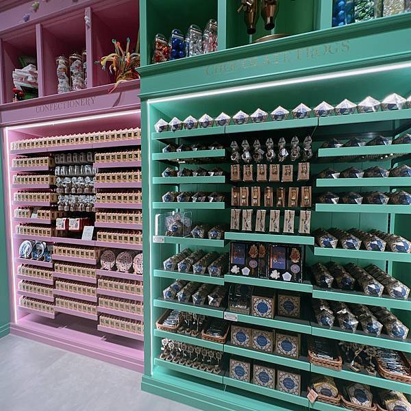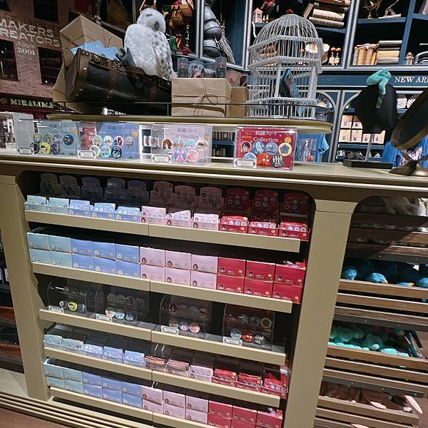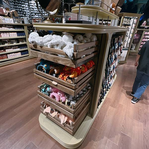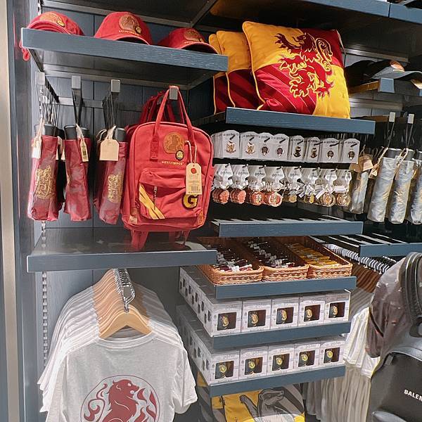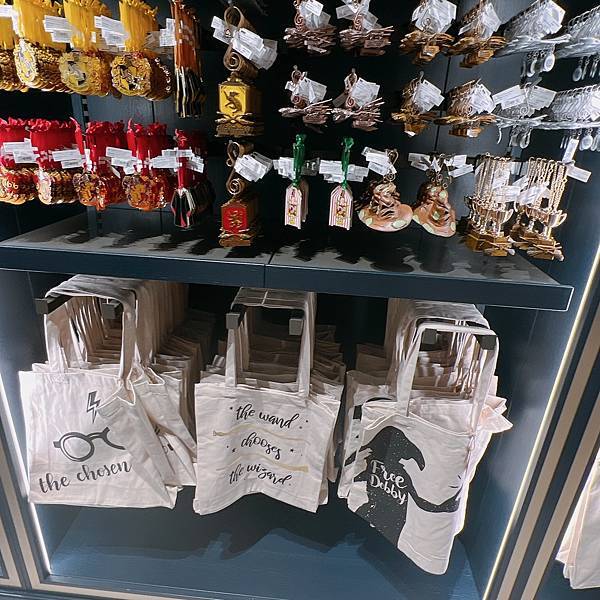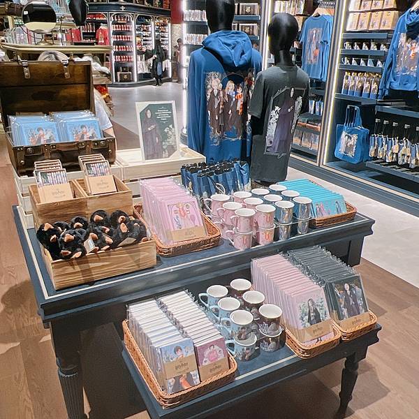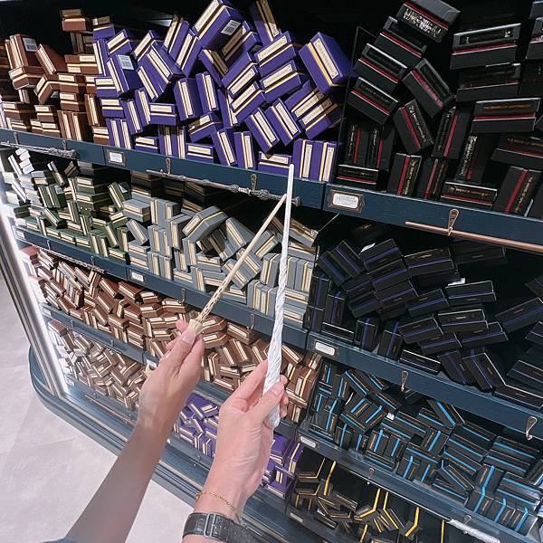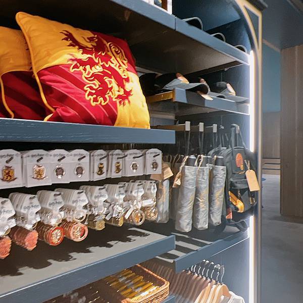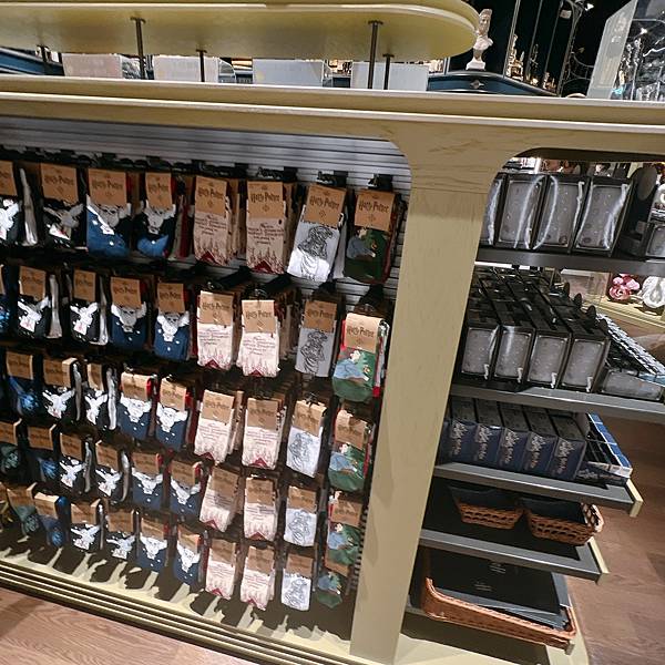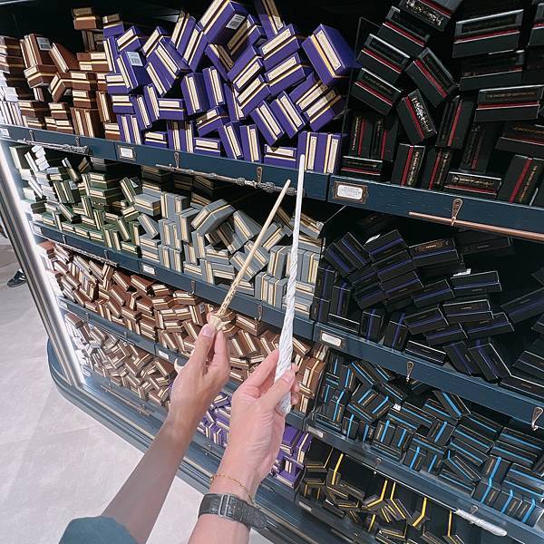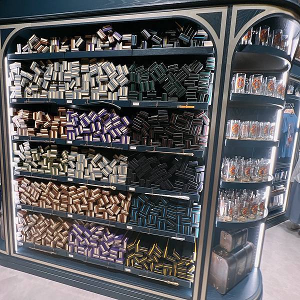 周邊店在未入場前就能先逛,很大、很多東西可以,但說要多好買?就看你對哈利波特的愛,比較多的是會在入場前先來買巫師袍相關道具之類,入園後拍照使用蠻有氛圍感,我覺得周邊最好玩的就是魔杖吧,有互動區,魔杖也超多把真的很驚人。