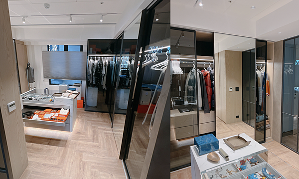 我的設計師,以及有一派的人都認為如果做了獨立更衣室,就不需要做拉門,這樣除濕乾燥才比較方便,我必須承認,我在家的時候,基本上這些拉門我都是打開,看似有些麻煩,但我跟你說,當你想要視覺好看一點的時候,把他們推回去,或者是像我透過灰玻璃去做稍微色彩一致的修飾,真的還是好看、舒服很多,我還是推薦要做。
