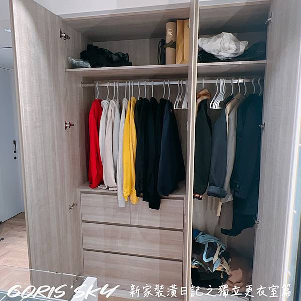 之前提過我新家只做兩間房間,然後一個空間我獨立做成我一直都很夢寐以求的更衣室,之前只是大概施工照,後來我覺得這還是要衣服、配件放進去再拍比較好看,一拖就拖到現在。