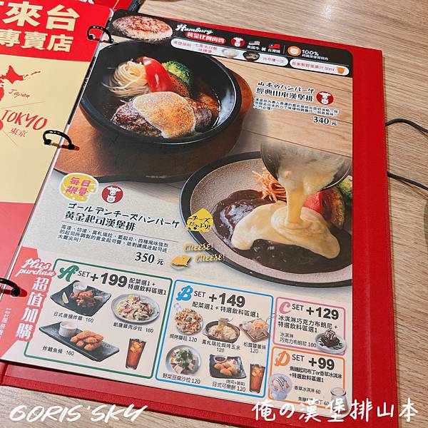 俺の漢堡排山本(山本漢堡排)門口就有標準很日式餐廳都會有的清楚菜色價目!