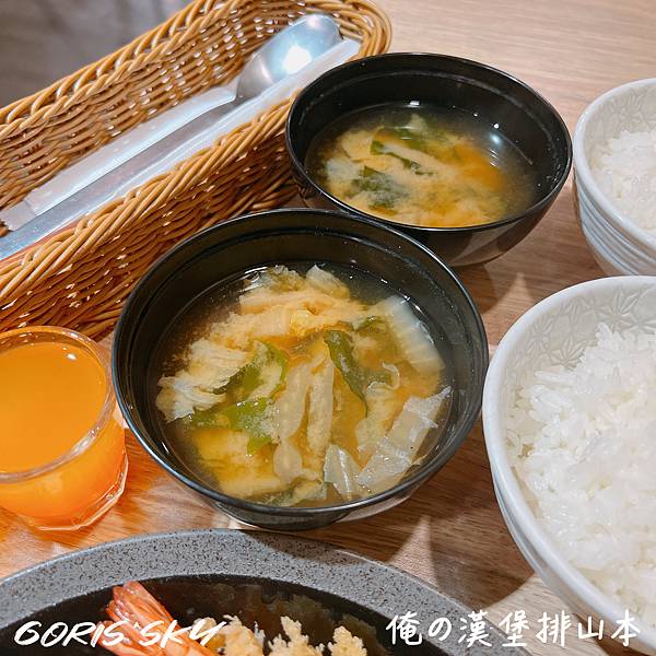俺の漢堡排山本(山本漢堡排)也有附味噌湯,料蠻多的,也可以續一碗。